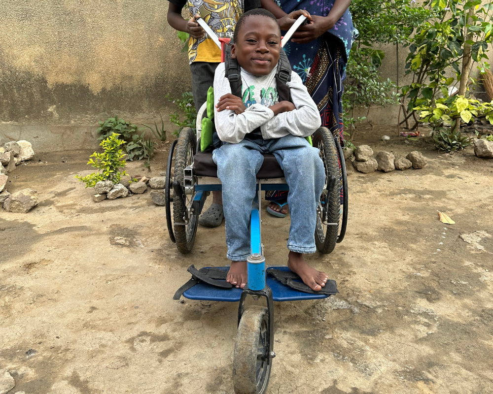“I was born with fragile legs and growing up it was quite a challenge travelling from one place to another. I feel comfortable with my new wheelchair from Wheelchairs For Kids, my handwriting has greatly improved and I no longer eat from the dirty ground like before.”